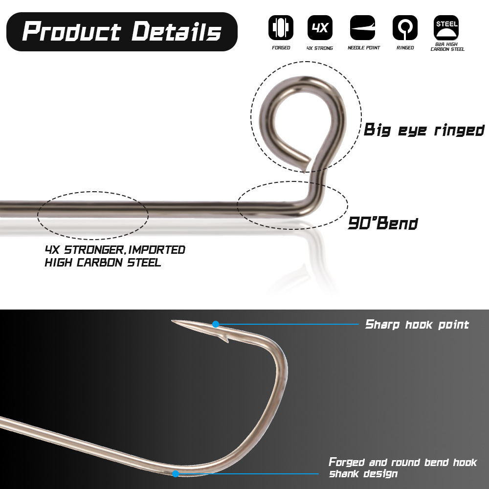 1. The hook point is chemically sharpened and Nor-Tempered for extra sharpness and durability.